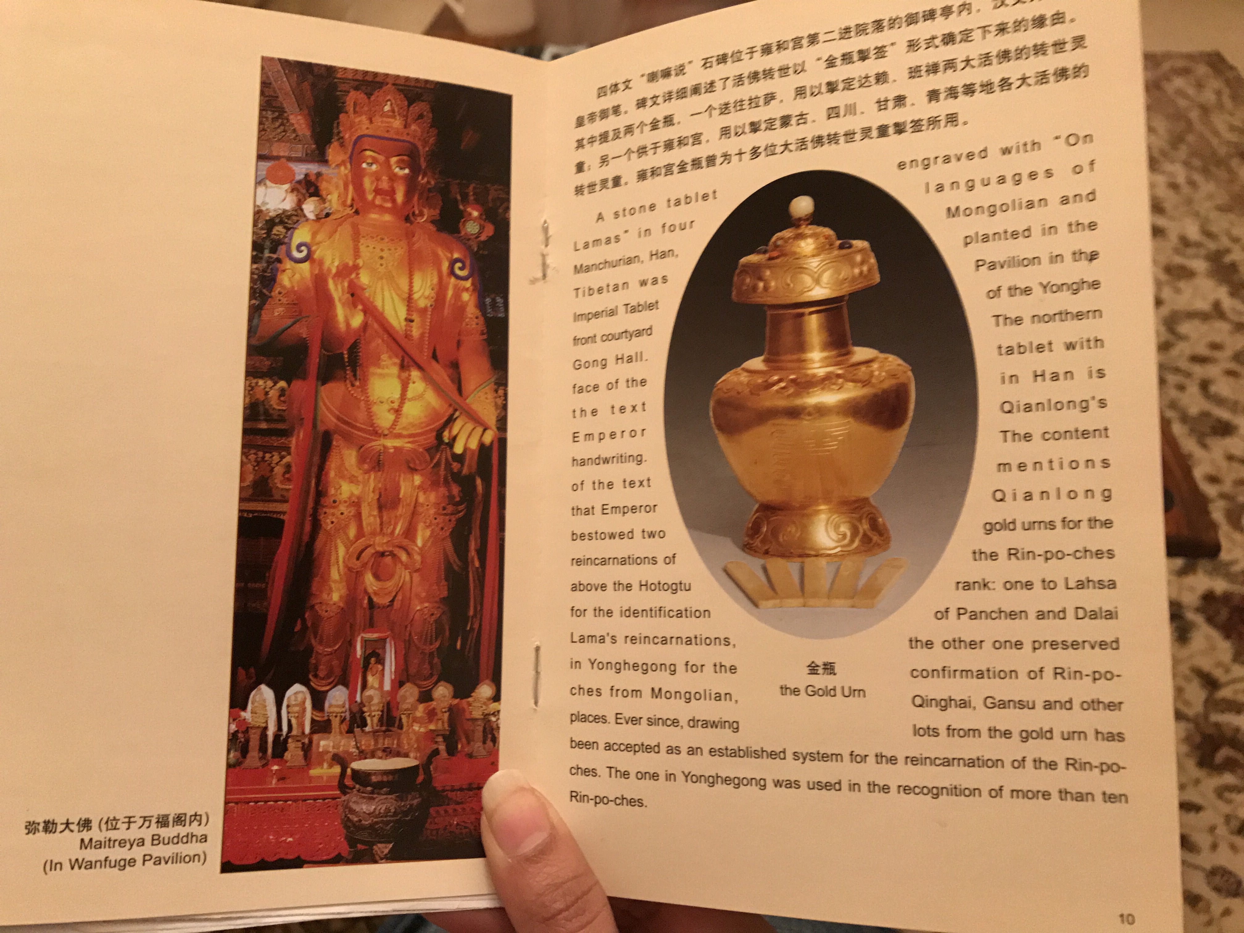 The most impressive among the Pavilions is the Wanfuge Pavilion which houses the statue of Maitreya Bodhisattva, status, 25m high statue, carved from a single piece of sandal wood.