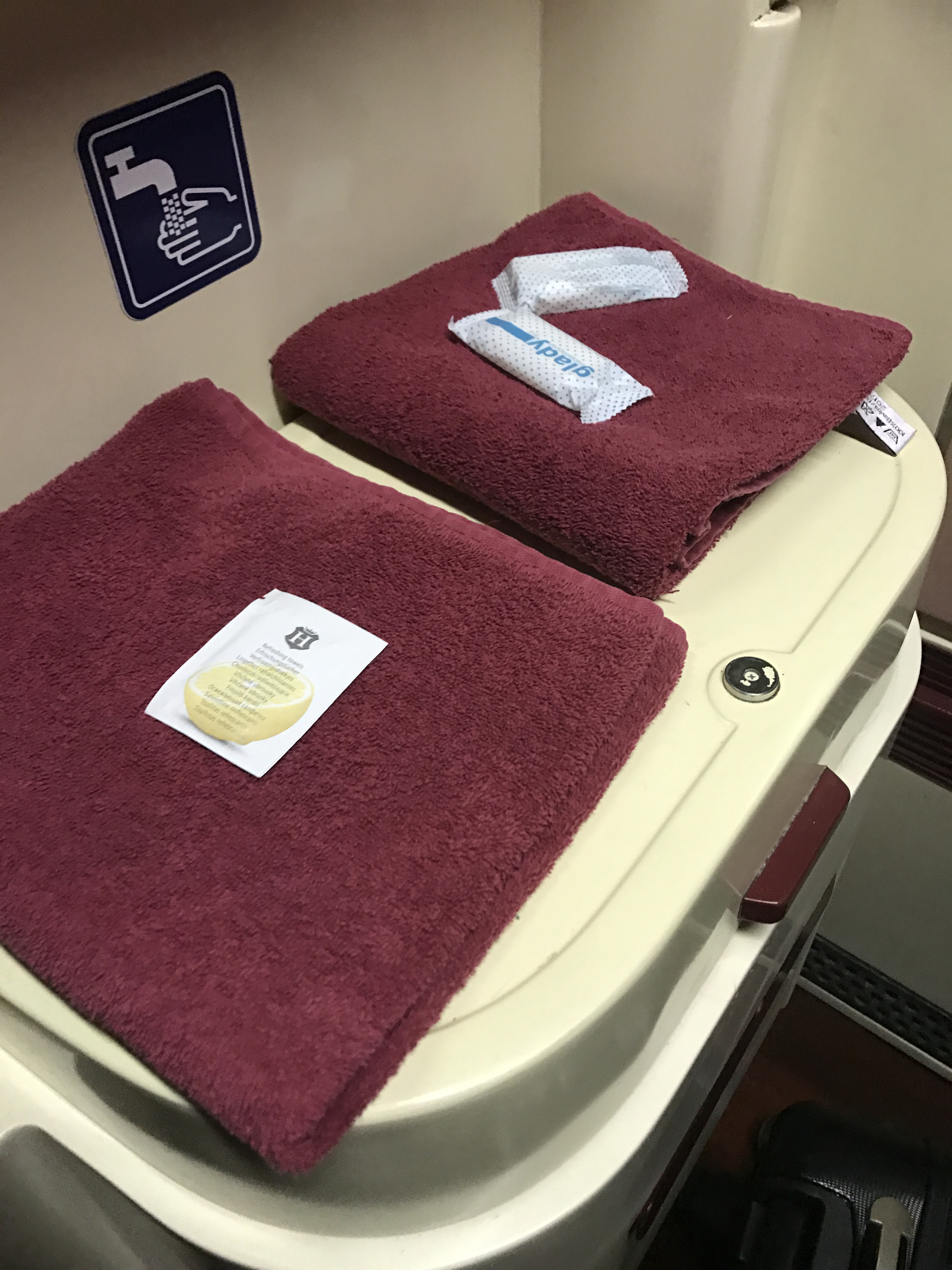 2120: We boarded the Nightjet sleeper train to Vienna. (We booked tickets with the Austrian rail booking site, OBB). This is where we were in for a severe disappointment. As it was cold (-3 degrees Celsius) the water on the deluxe train carriage had frozen. This meant that the shower and toilet in our sleeper compartment were not working. They did have some nice amenities on offer (hand towels, slippers, ear plugs, water, snacks and sparkling wine) which made up a little for the lack of shower and bathroom.