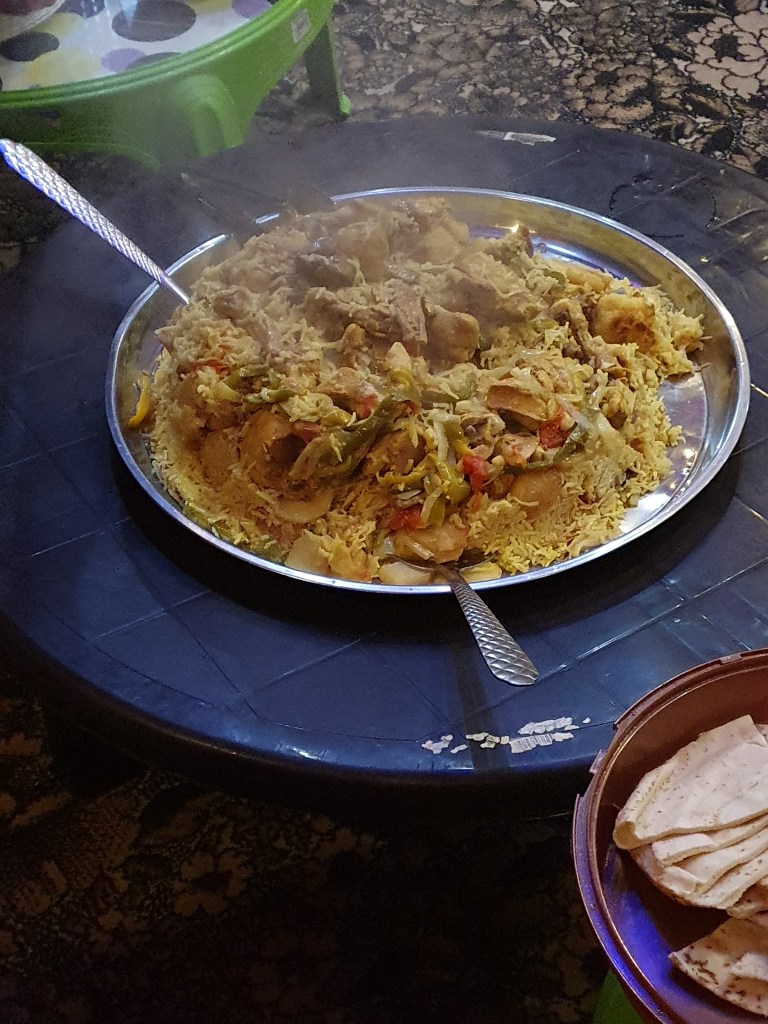 1900: Dinner at local host in Petra. Dinner is chicken Muqluba- the name literally translates to ‘upside down’. It’s a casserole with rice, vegetables and chicken that’s cooked, flipped and served with yoghurt.