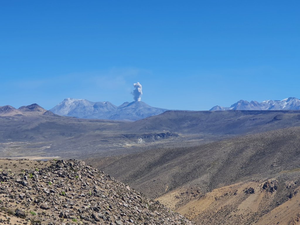 We also see Sabancaya volcano in the distance, which has started to produce a lot of smoke. In March 2023, Sabancaya erupted to life with a 3.5km column of smoke and ashes. Since then it has been smoking at a steady rate – but according to our guide, this is the most active he’s seen it for a few weeks.