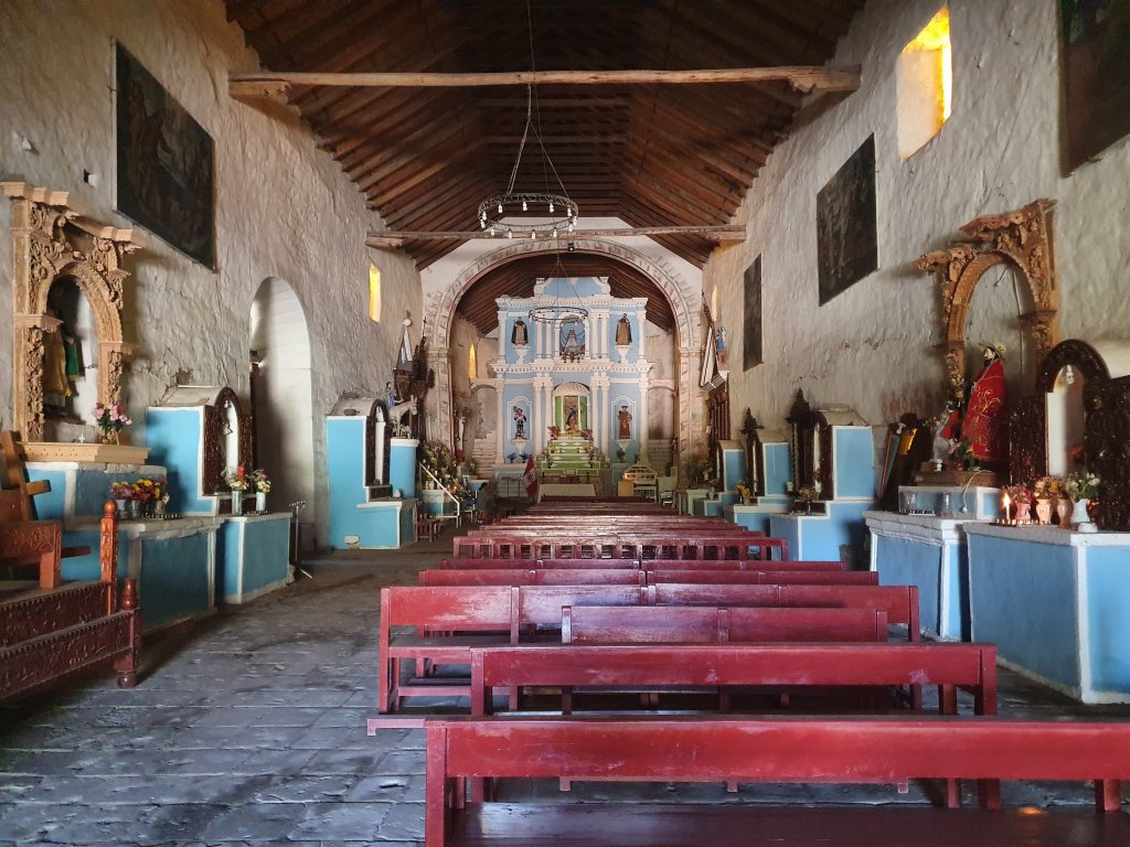 1445: Our next stop is the small village of Coparaque. There is a main square, church and a few shops. There is also a small community centre. The church was built on top of an Inca palace that existed when the Spanish invaded.