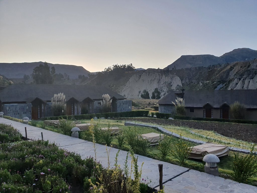 Hotel review:  Colca Lodge is located about 10 km from the village of Chivay. It is one of the few hotels in the Colca Valley with Hot springs in the grounds. The hotel is set to the side of a mountain with beautiful views all around. The Colca river - with several hot springs bubbling through, runs across the hotel grounds.  There is also a couple of enclosures with llamas and alpacas. There also a small education centre with information on llamas, alpacas and condors. There is an onsite and restaurant and a health spa. It is certainly the best hotel we've stayed at in Peru and I would highly recommend it, if you are in this part of the World.