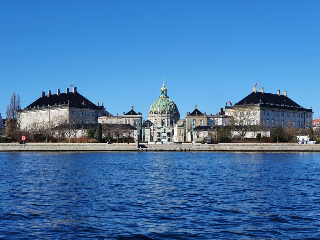 Amalienborg Palace is the winter residence of the Danish Royal Family. The Palace consists of 4 buildings set around a courtyard.