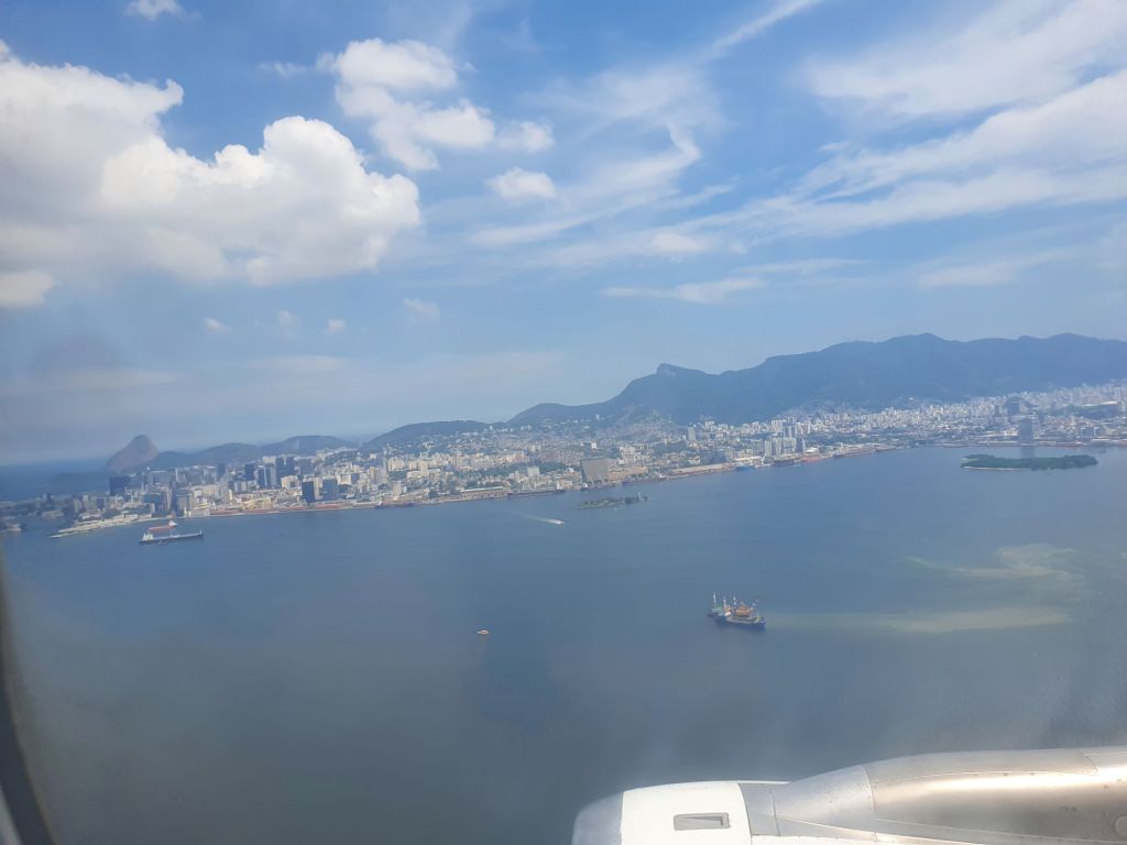 1230: Flight to Rio de Janeiro. As we arrive in Rio city airport, I am lucky enough to be on the right-hand side of the plane, giving me great views of two defining monuments of Rio; the Sugarloaf mountain and Christ the Redeemer statue.