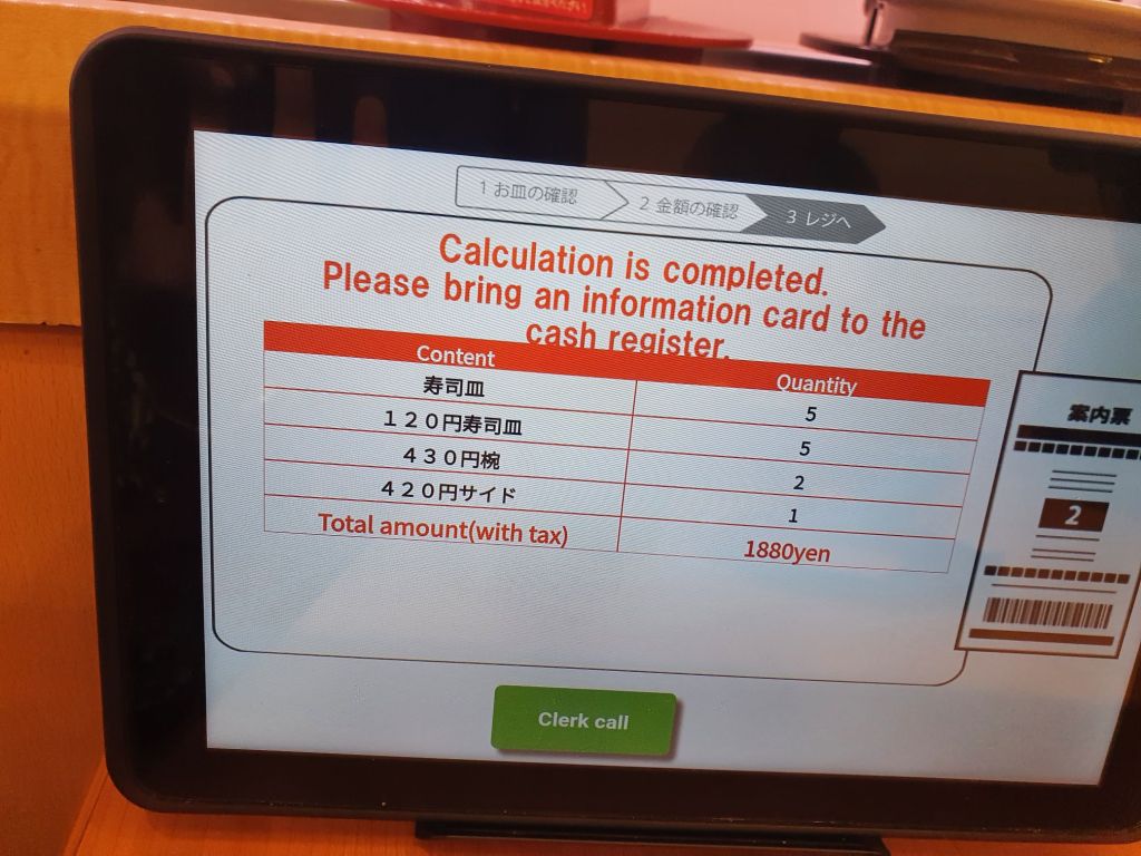 It was a bit of a hurried lunch over 30 minutes, and we had plenty to eat. The food was very reasonably priced and only cost 1880 yen (10 GBP) for 3 people (total of 13 dishes).