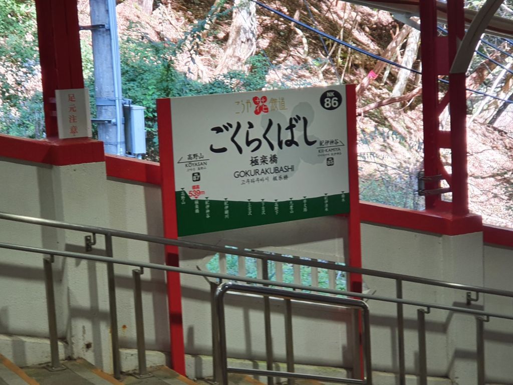 From Osaka-Namba Station, you have to take a train to Gokurakubashi. The journey takes you away from the hustle and bustle of Osaka and into the quiet mountains.
