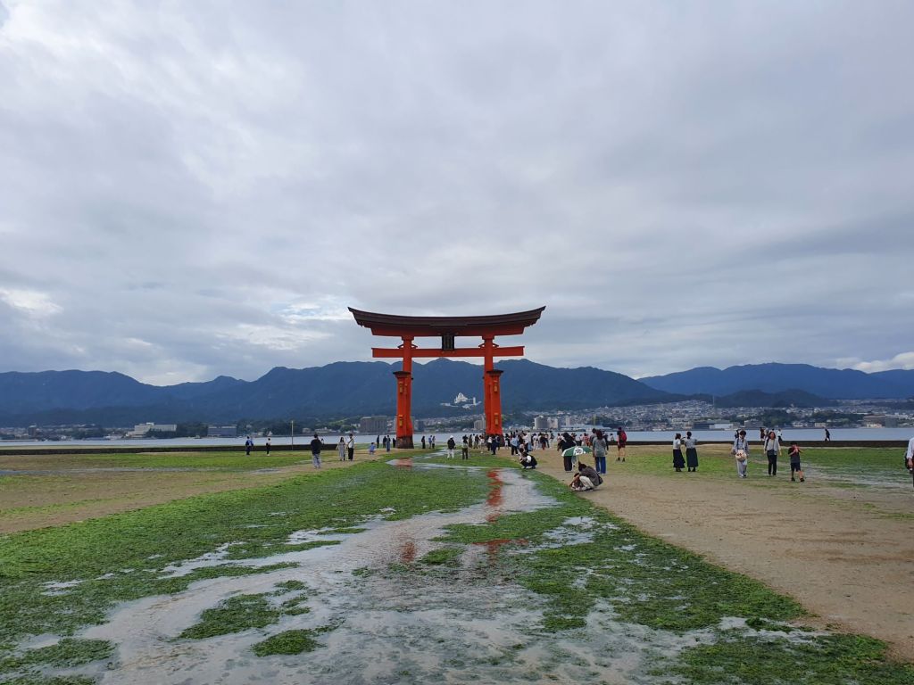 1300: On the way to the island, the ferry takes a slightly longer route to allow passengers to take a good look at Miyajima’s most famous sight, the large Torii Gate on the beach which, at high tide appears to float on water.