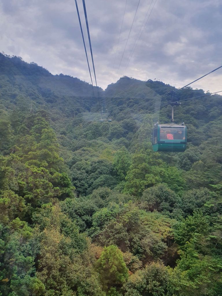 The ride up the mountain takes about 20 minutes and requires a transfer of ropeways along the way.