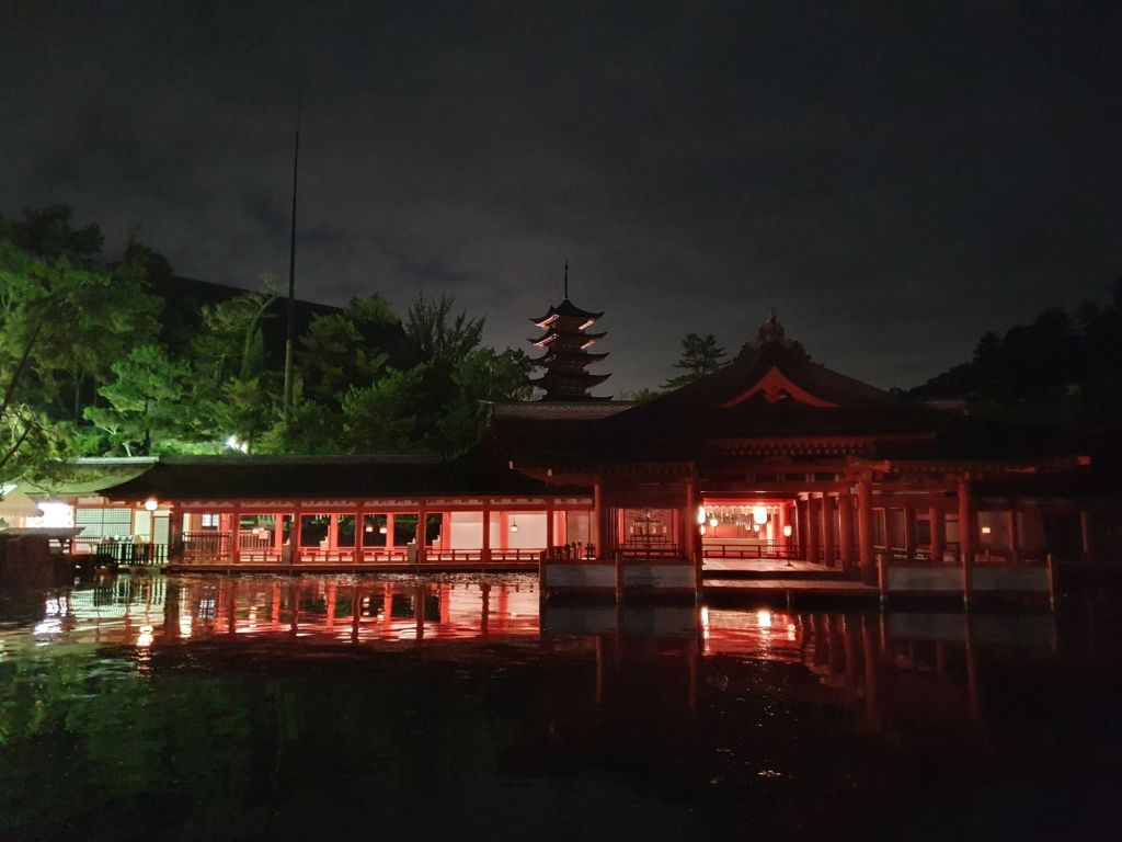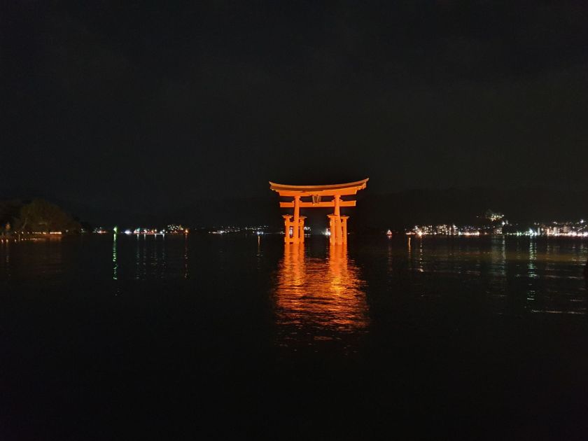 We walked back to the Itsukushima shrine and the Torii gate, now submerged in the full tide. It was fully lit up too and we could see why this is known as the three best views in Japan (the other two being the Matshushima Bay and Amanohashidate sand bar).
