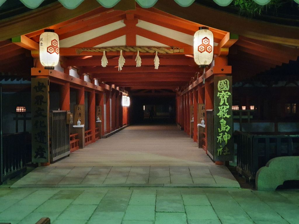 15th of October is the Chrysanthemum ceremony and “Bugaku” traditional court music and dance is performed on the lit-up stage at Itsukushima Shrine.