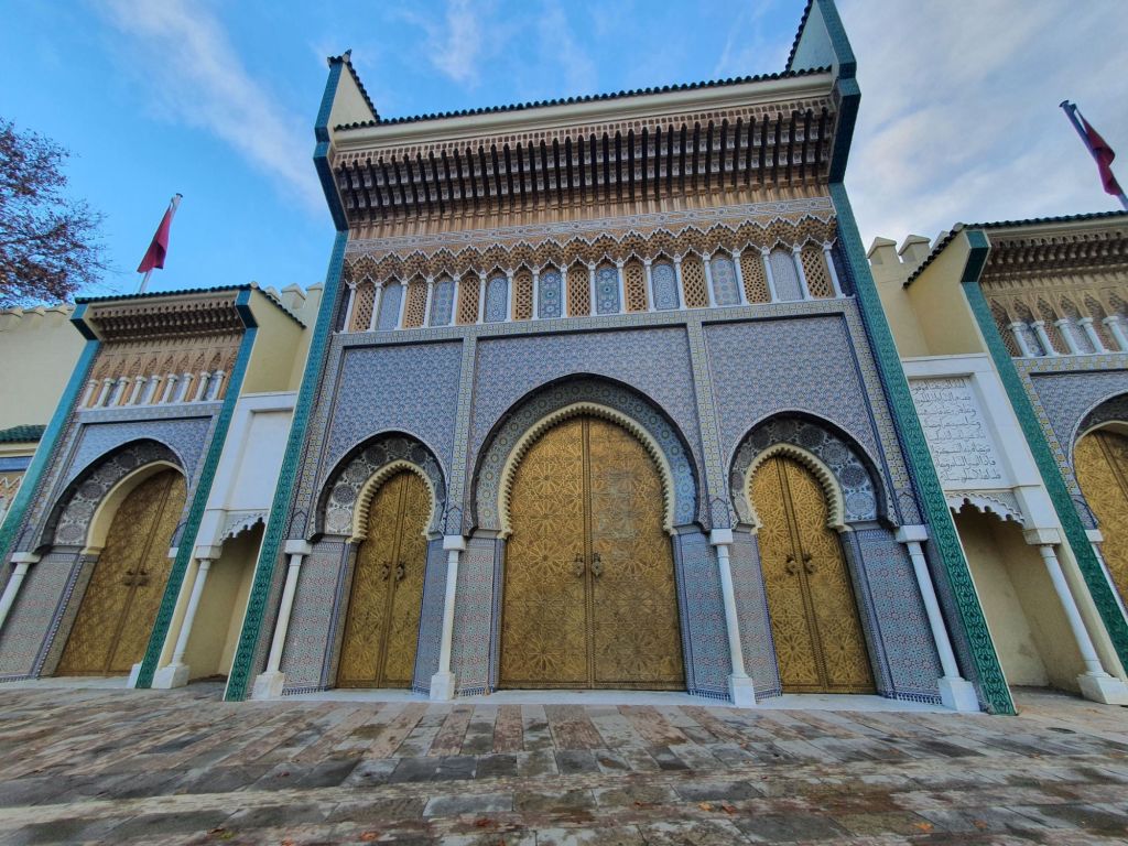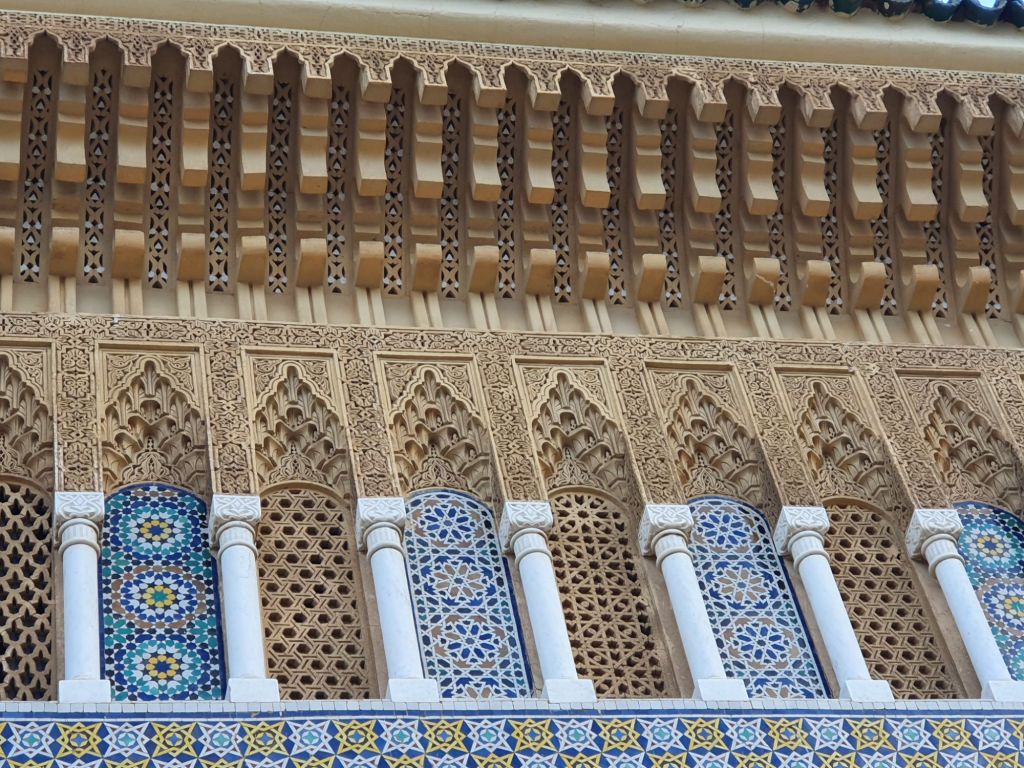 Our first stop is outside the royal palace (Fes El Jedid). The palace is not open to the public, but you can see it from the outside. The gates are a great example of islamic and moroccan architecture, combining the four elements of marble, wood, plaster and ceramic tiles.