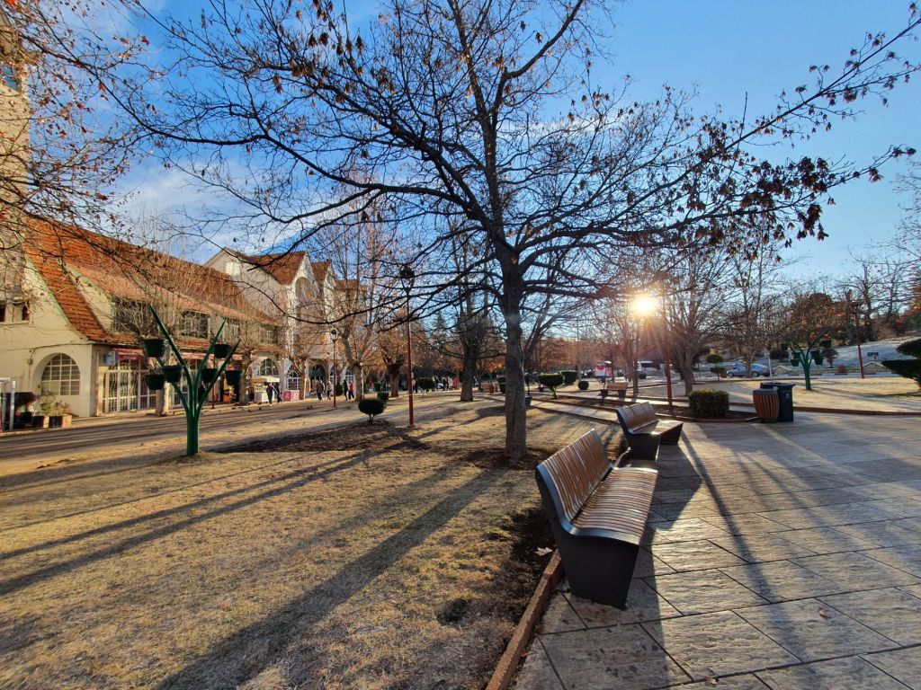 The lack of snow means that water conservation is a priority. If there is no good snowfall, in the summer the water will have to be rationed. We also drive past several man made reservoirs and irrigation systems. These capture the melting snow at the end of spring and use it for cultivation during the summer.