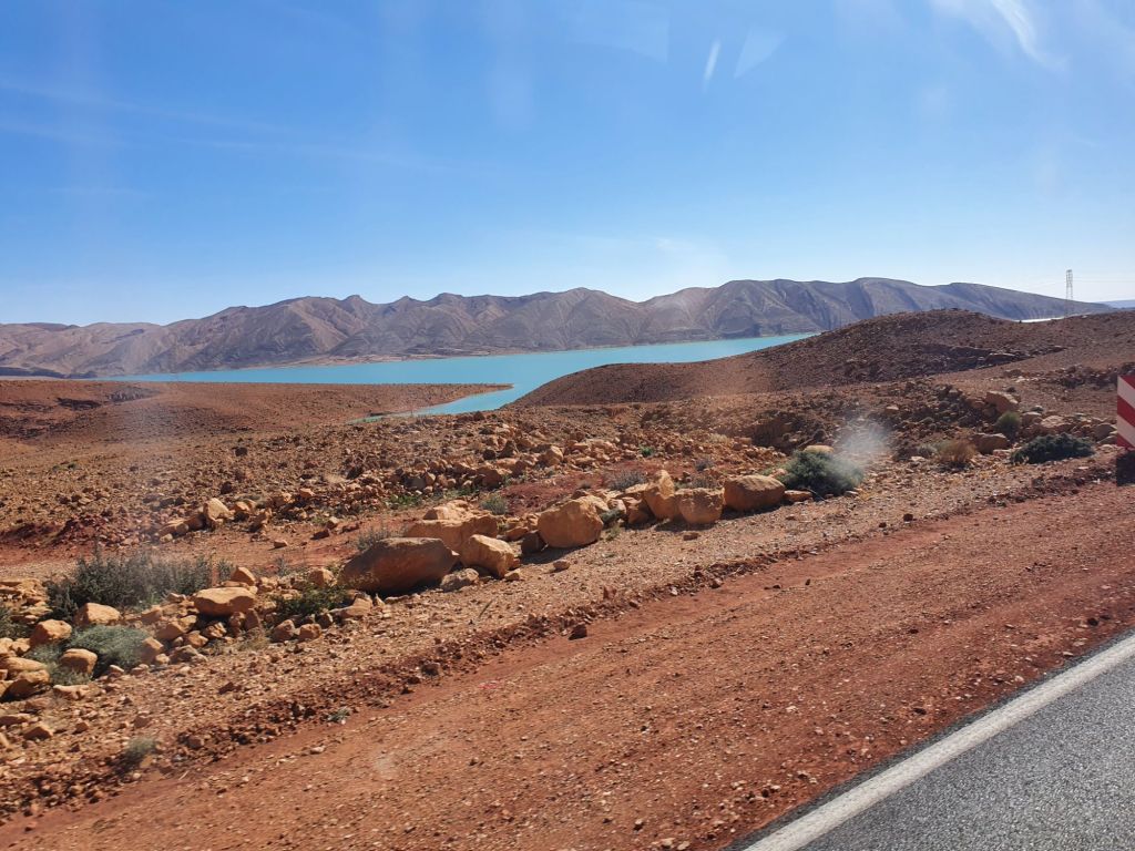 We traverse the High Atlas Mountains, where Toukal is the highest peak, although there’s no fresh snow this year yet.