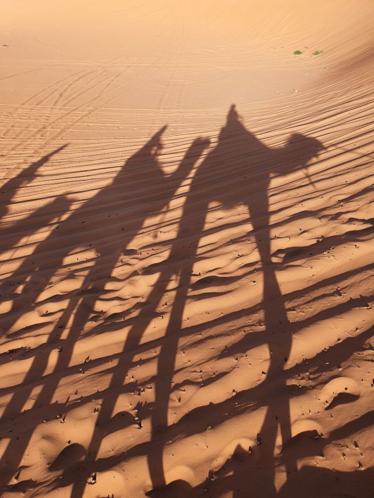 It’s my second time on a camel (after Wadi Rum, Jordan). But this is trickier. AT wadi Rum, the ground was hard and flat. The dunes here undulating and are made of very fine. With each step the camel moves a lot more, so balancing is required on your part. It’s great workout for your core and thighs.
