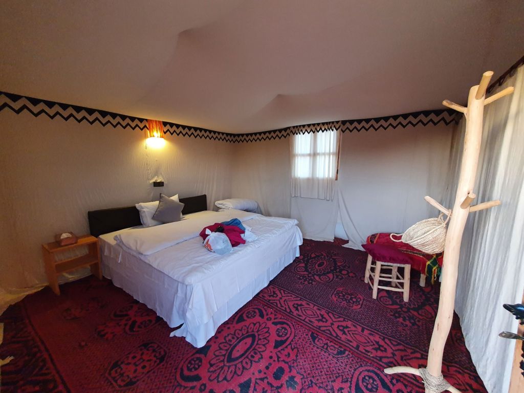 The camp is made of dozen or so tents, each housing two comfortably furnished rooms (in fact, the beds and bedding were better here that some of the big city hotels!). Every room has electricity and a charging point. There is a common toilet and shower block and a seperate catering tent.