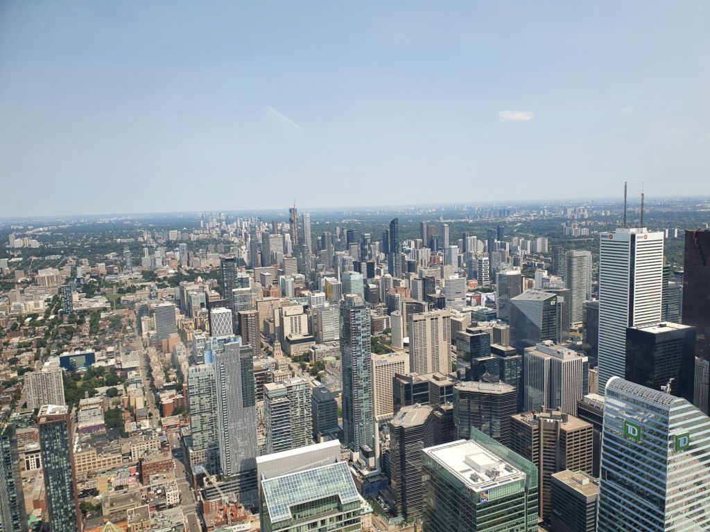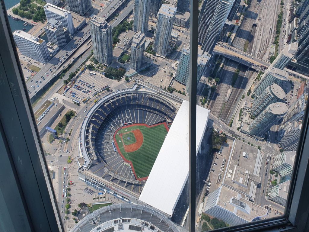 Our first stop was CN tower, the most recognisable landmark in Toronto. It was built between 1973 and 1976. The tower is 557 meters tall. There are vieweing platforms at 356 meters and a smaller on at 447 meters. It is also the tallest viewing platform in the Western Hemisphere.