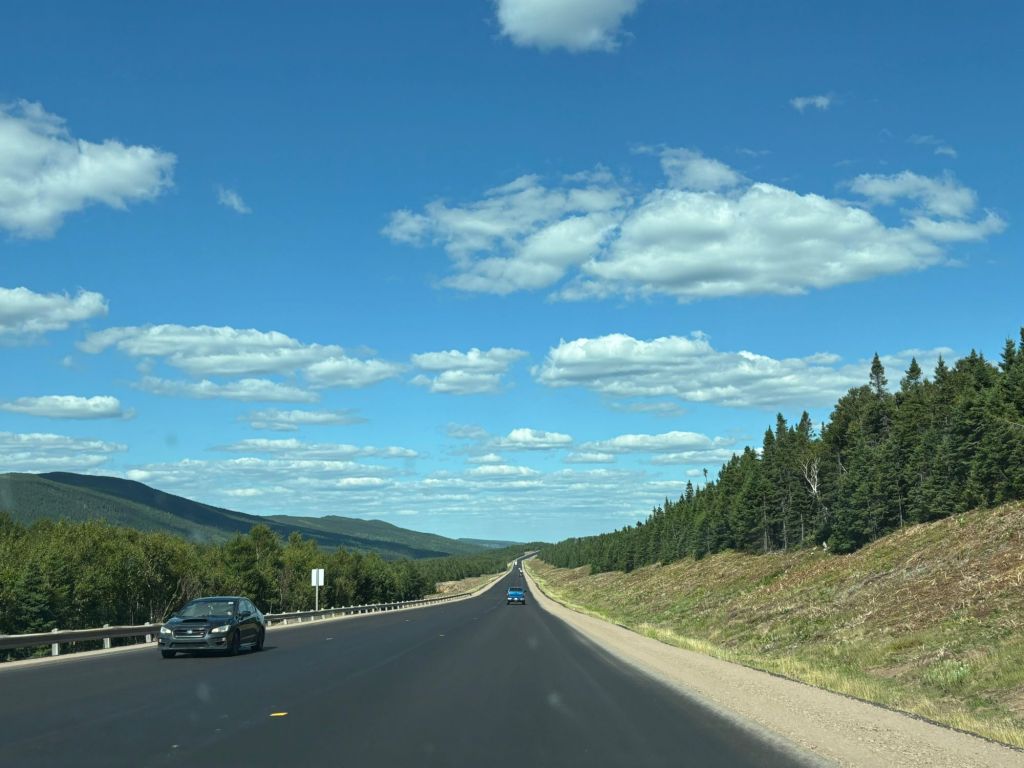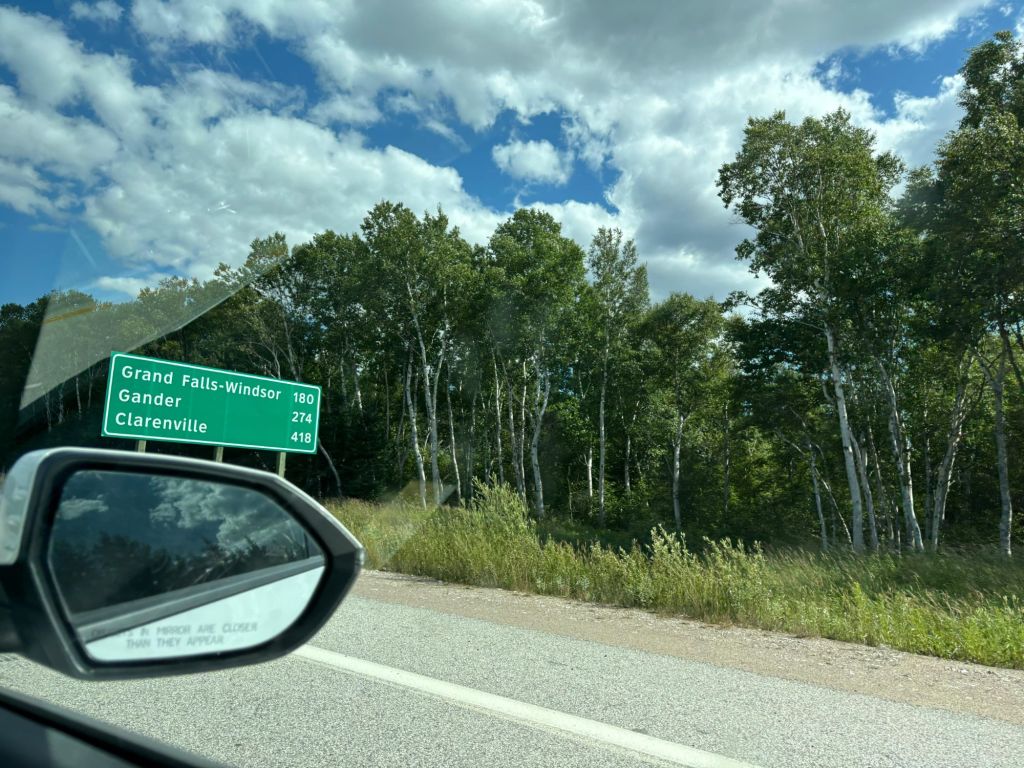 1430: Back into the car and on our way. We need to get to Gander, which is where our overnight stop. But first we have to make our way back to Trans Canada highway at Deer Lake.