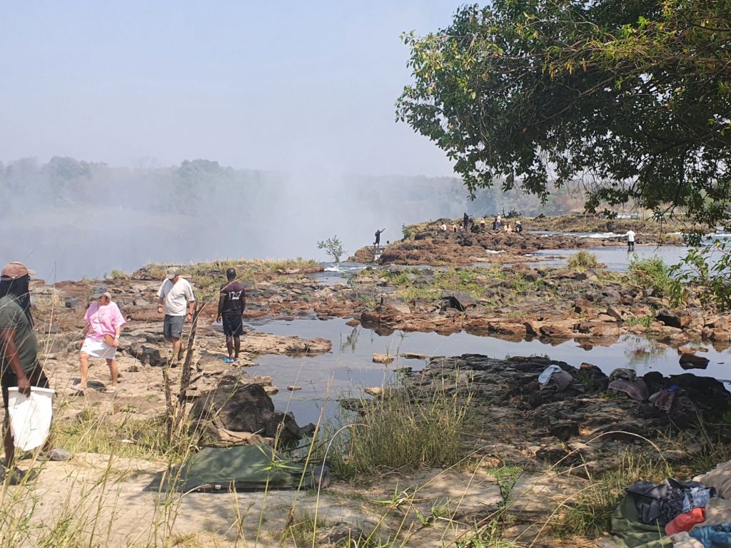 1050: We are at Devil’s pool. There’s quite a large rocky area. We all pick a nice spot and sit down on the rocks. The guides hand back the phones to us so we can take photos whilst we wait for our turn in the pool.