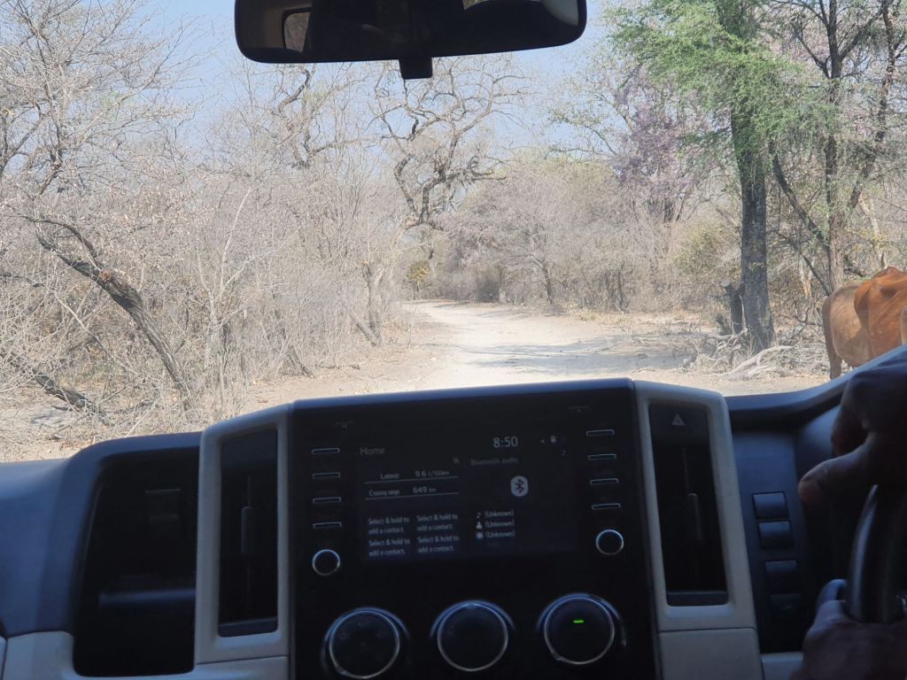 1130: We are lucky at the border crossing, there isn’t much of a queue. Soon, border formalities are over, and we are in Namibia. It is a short drive to our hotel, but that’s enough to see a few zebras on the way.