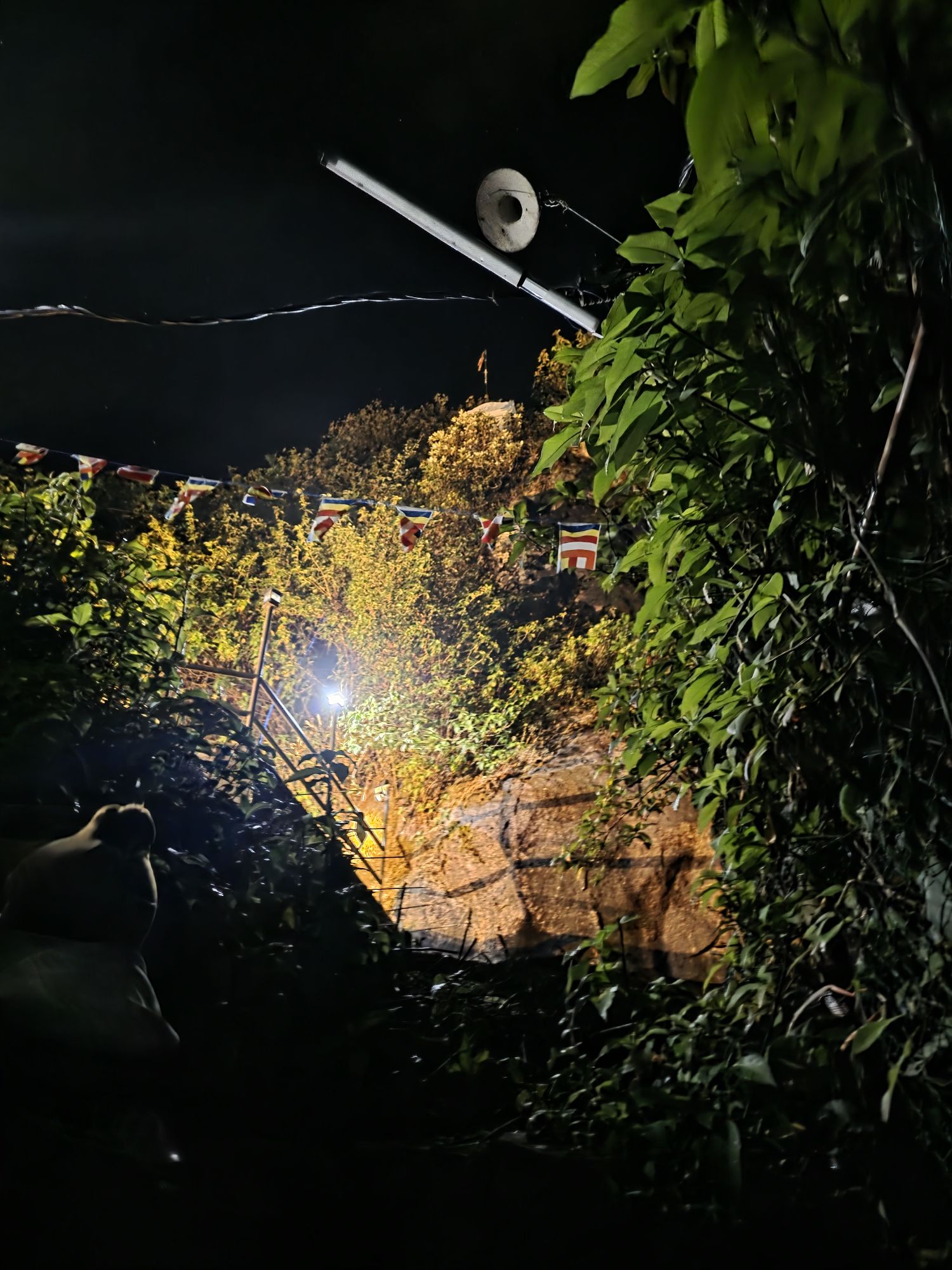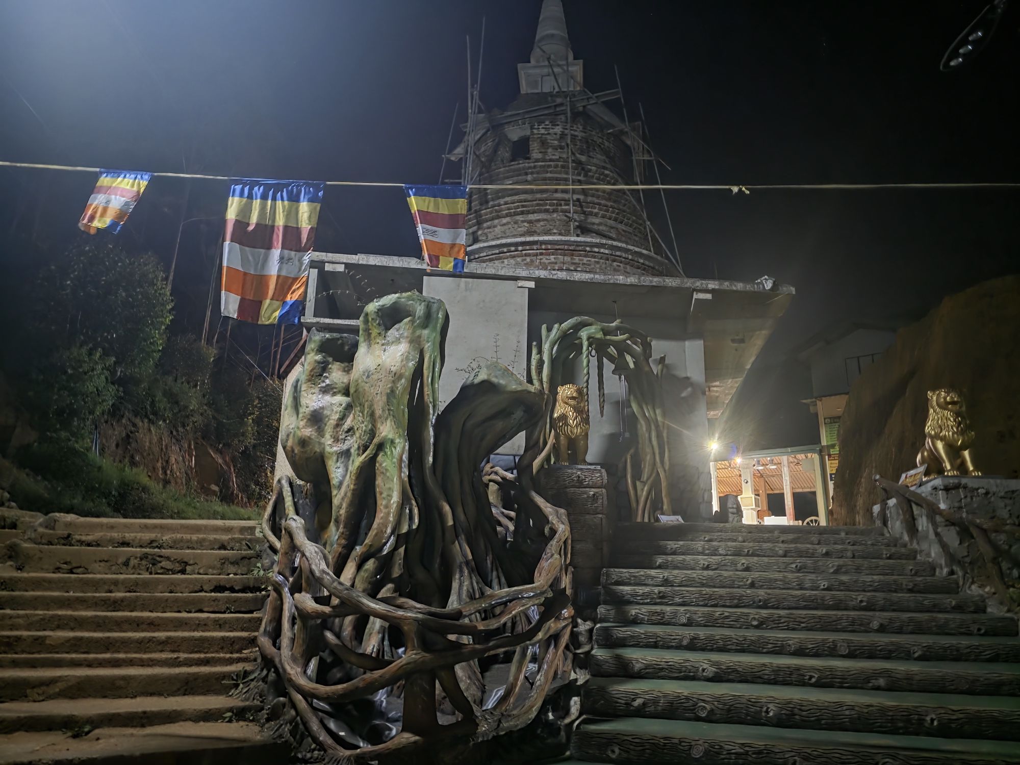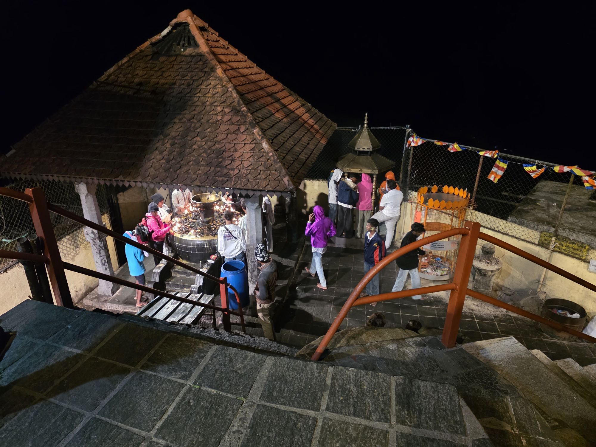 0000 (Midnight): Another milestone; “Nissanka-Malla” cave and temple. It is in this temple that Buddha is said to have rested on his journey to the summit. In 12th century, King Nissanka-Malla built a temple here, now named after him.