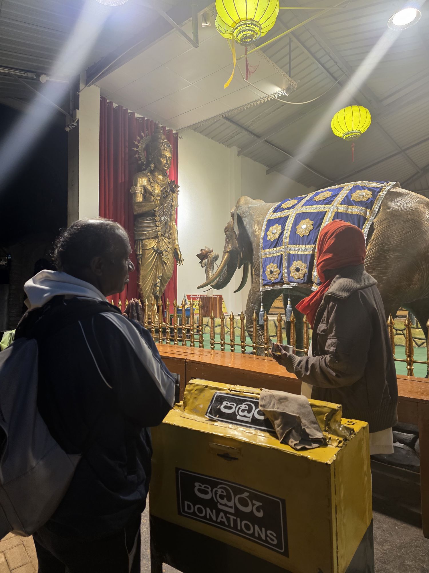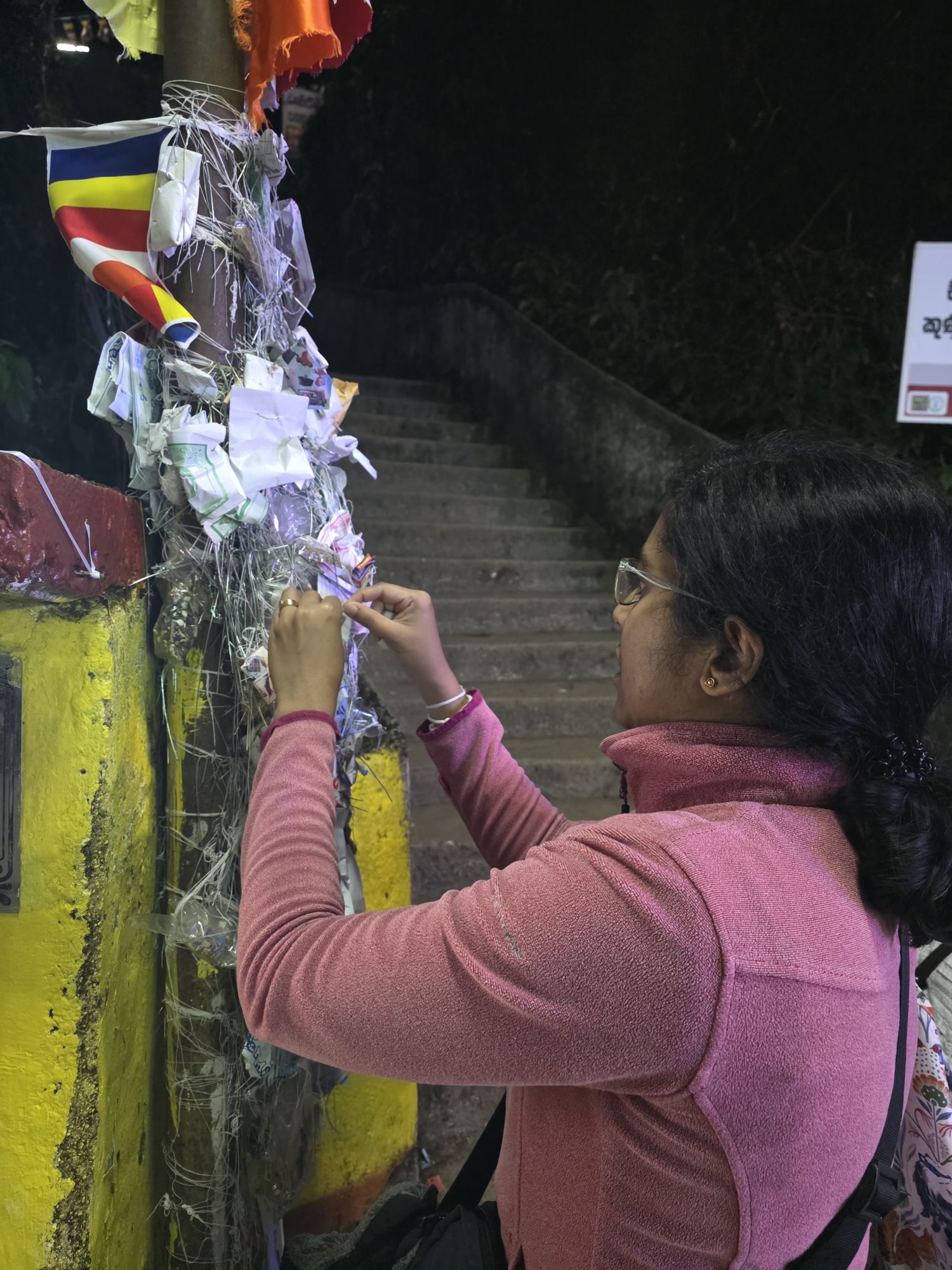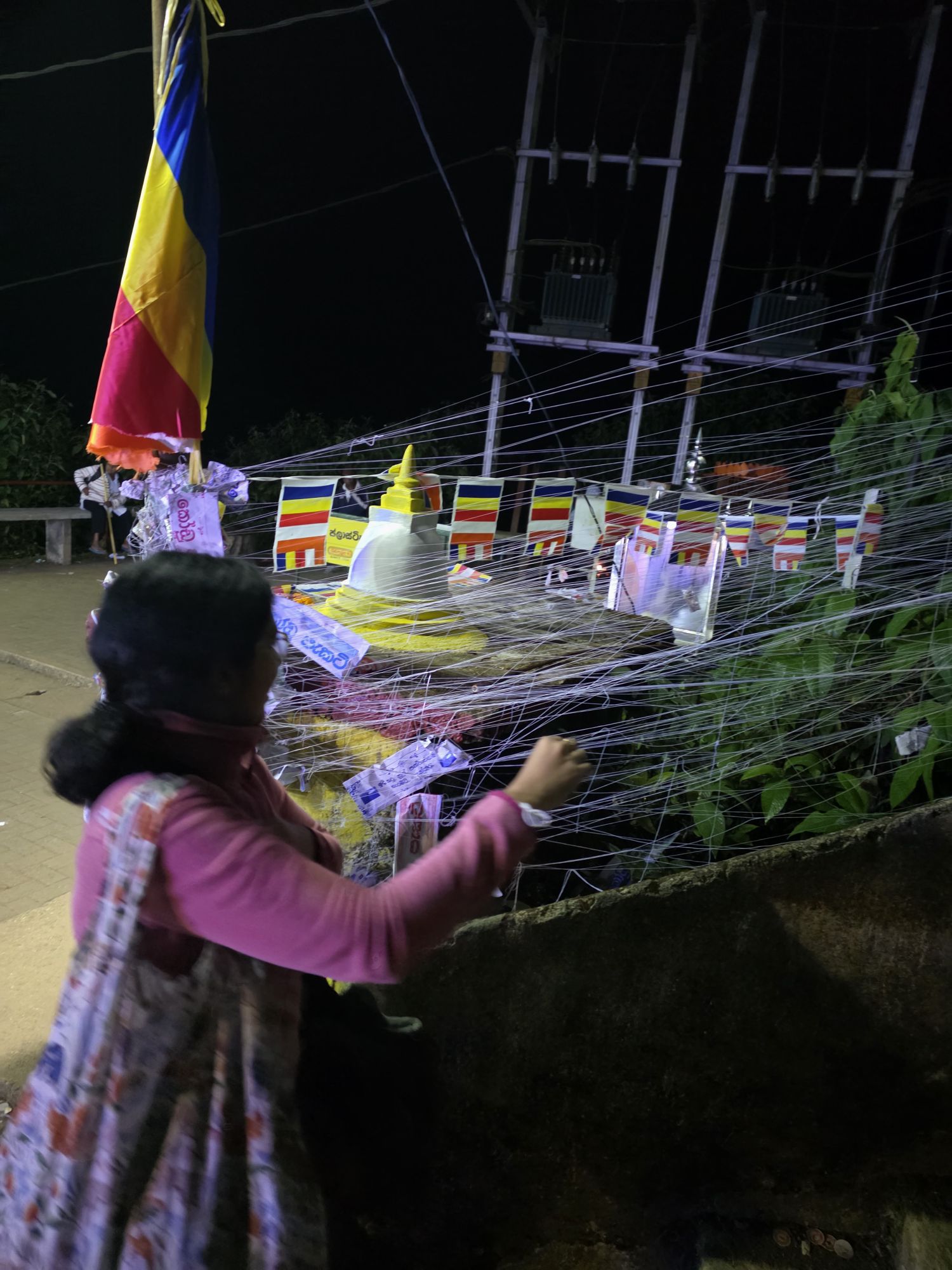 0300: We arrive at Gettham Pana (loosely translated as “place of crafting/sewing”). This is an important pilgrimage point for Buddhists. It is said that the Lord Buddha had torn his robe and had sewed it at Gettam Pana. To mark this, there is a “Kodu” (novice) ritual to weave here with a needle and thread (which came in the novice packet).