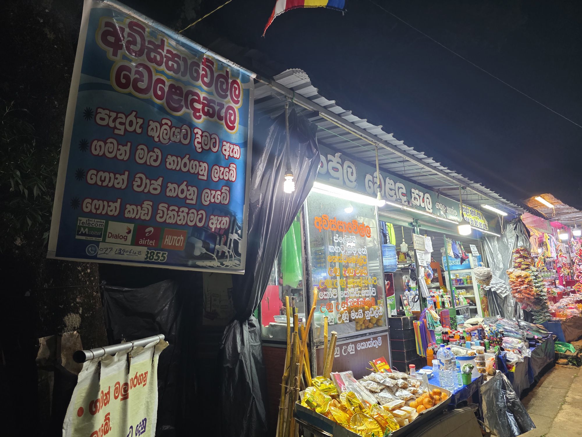 The road is dotted with many brightly lit shops and cafes, offering everything from food, drinks to phone charging and phone top-ups. Toilet facilities are also available at regular intervals (there is a small charge to use them).