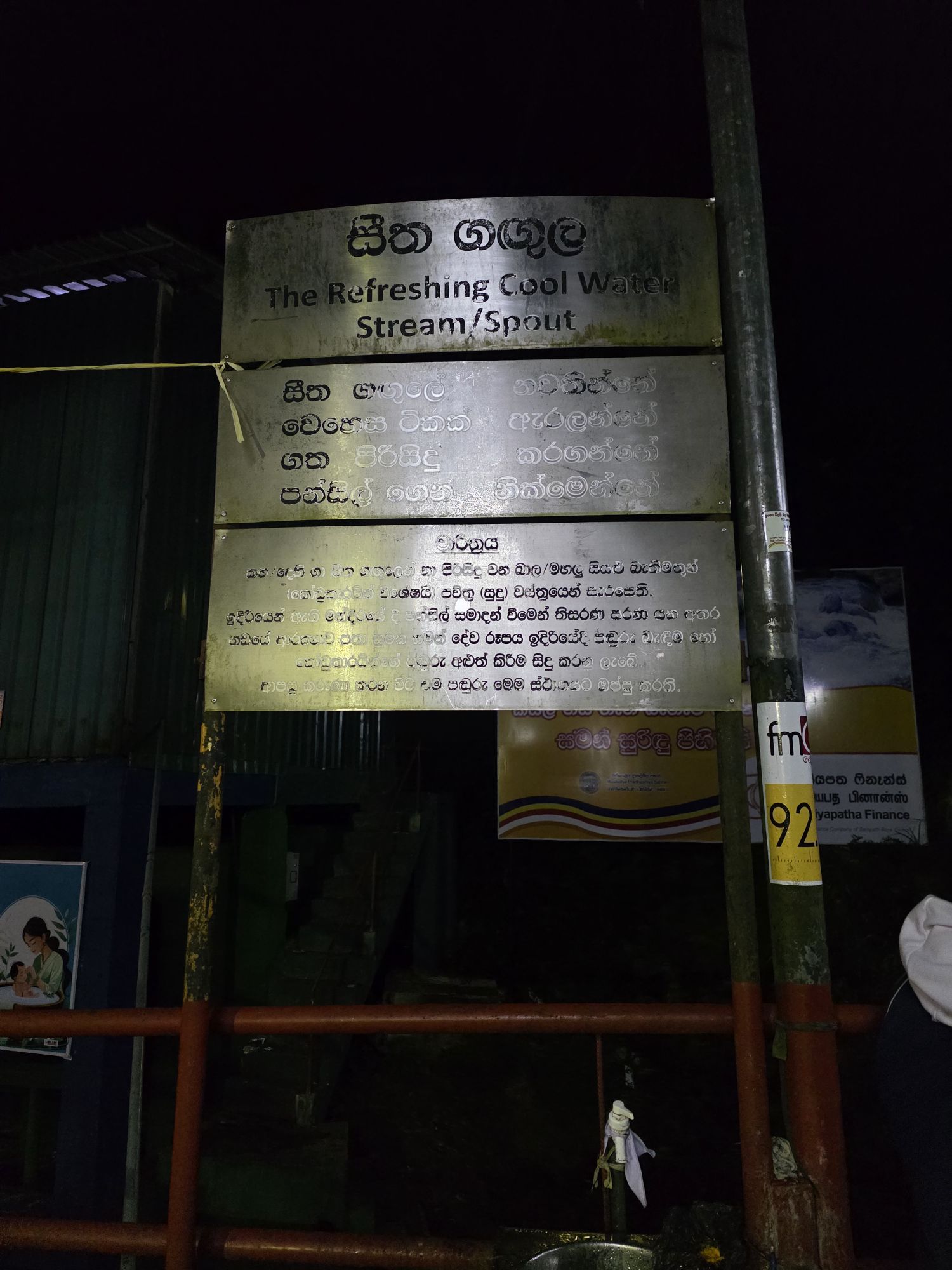 0100: We had arrived at Seetha Gangula (meaning “cool water”) river. It starts from Siri Pada and the river is considered sacred. Traditionally, this is the place where pilgrims would shower from the fresh water and most people change to a fresh set of white “temple” clothes. (There are changing facilities available). We didn’t have a full on shower, but did take the opportunity for a quick refresh.