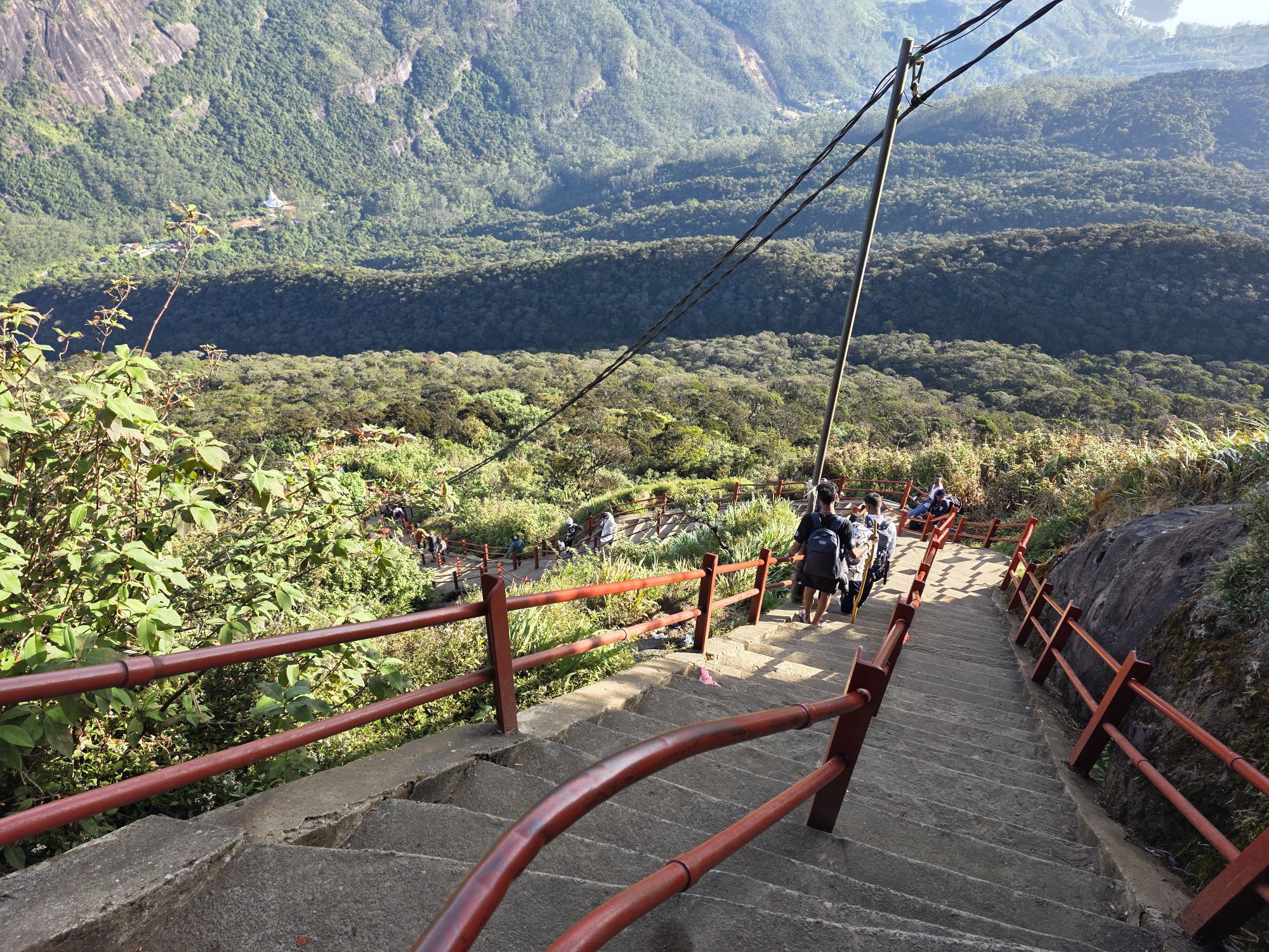 The summit of the Siri Pada is 2,243 meters (7,359 feet) above sea level. There are 3 main routes to the summit: from the town of Hatton (hill country and tea estates), from the town of Ratnapura (centre of the gem industry in Sri Lanka and the oldest route) and from Kuruvita (apparently the most beautiful route).