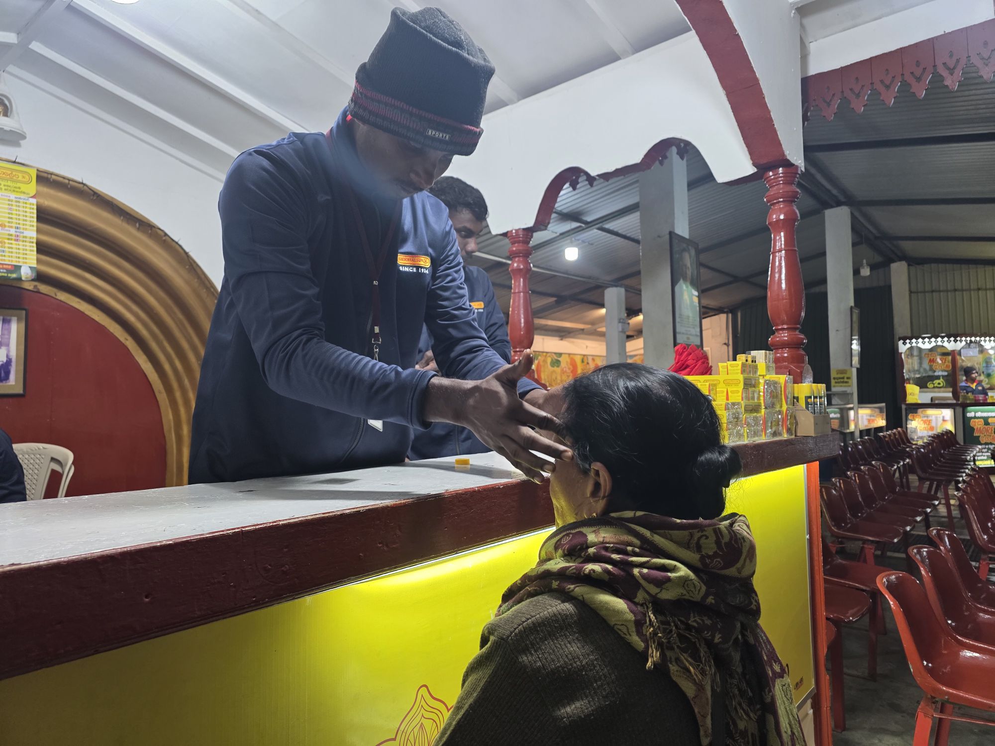 0300: We arrive at Gettham Pana (loosely translated as “place of crafting/sewing”). This is an important pilgrimage point for Buddhists. It is said that the Lord Buddha had torn his robe and had sewed it at Gettam Pana. To mark this, there is a “Kodu” (novice) ritual to weave here with a needle and thread (which came in the novice packet).